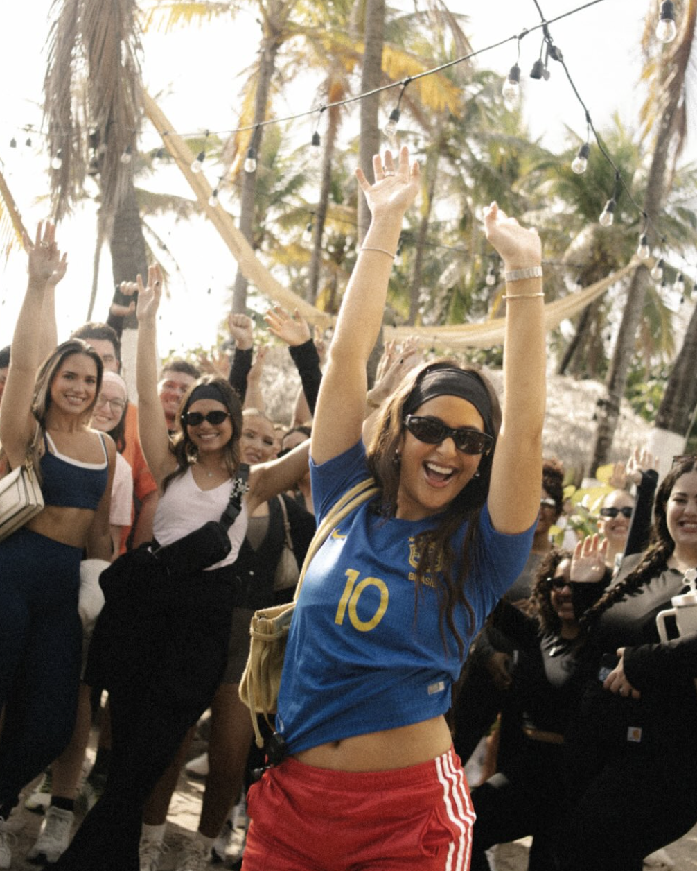 Timed to the cultural momentum of Lauren’s movement, the event reimagined a viral ritual as a pastel, sport-chic Miami morning — part wellness gathering, part fan pilgrimage, part fragrance world-building. What began as a beachside meet-up evolved into a choreographed yet effortless procession led by Lauren herself, transforming community into spectacle.